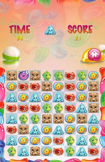 In this entertaining Android game, Jelly Pets, your task is to locate and eliminate groups of three or more identical animals. Simply tap on them to make them disappear from the screen. Sharpen your logical thinking skills while having fun! Remove as many groups of the same animals as you can, including dogs, cats, fish, parrots, and other adorable pets. Take advantage of bonuses that can clear entire rows or columns. See how many points you can score within the given time limit. Game highlights: - Vibrant and eye-catching graphics - Easy-to-use controls - More than 200 levels to conquer - Various bonuses to aid you in your mission