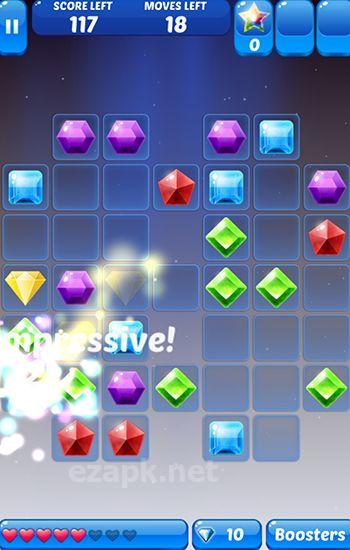 Embark on an intergalactic journey with Jewel Galaxy! Explore the farthest reaches of the universe and discover different constellations. Collect treasure and fly your spaceship forward. Blast away jewels that stand in your way and progress further. Match 3 or more of the same jewels to cause them to explode and gain points. Utilize various bonuses and boosts to beat levels faster. Compete with your friends and set records. Enjoy the vibrant graphics and 165 levels of captivating gameplay.