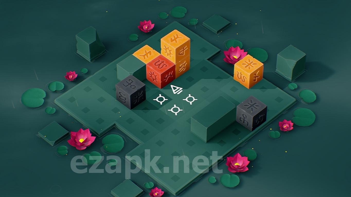 There is a puzzle like the ones with blocks like Tetris and the ones with a cube. The player needs to move the blocks in a specially designated area. The player moves only one block but he can form different figures from runes.