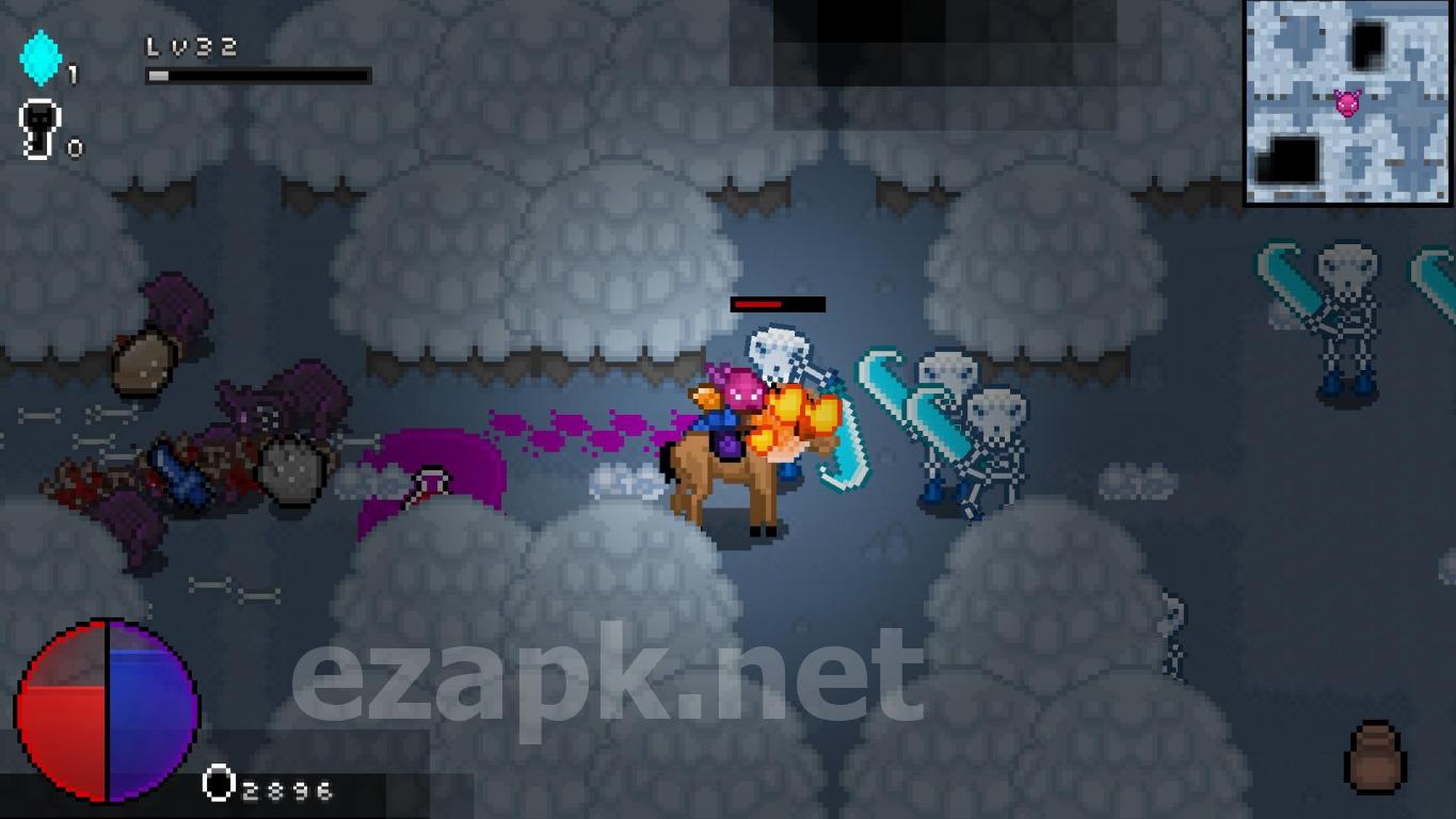 The action game has randomly generated levels. The game takes place in the dungeons and on big open levels on the surface. You will have to start the game with empty inventory if the character dies. There are online and cooperative battles available.