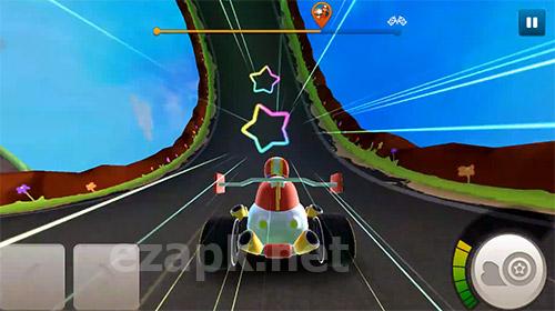 A kart is a racing car. Relating: Overcome sharp turns, gather bonuses, outrun rivals. Get ready for the merry races on the maps. It says to speed up your car. Explanation: maneuver to dodge obstacles and crashes against other racers. You can get new levels with new challenges and victories. The game features bright and colorful graphics.