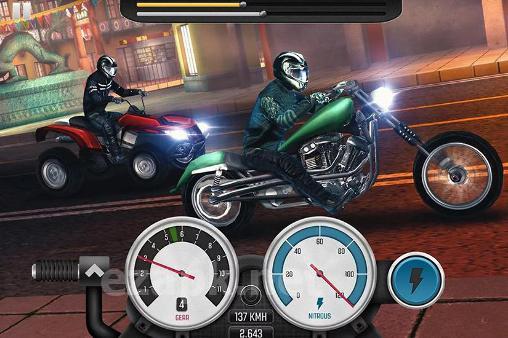 Top Bike: Racing and Moto Drag is an exciting Android game that puts you in the shoes of a street racer. Compete against powerful opponents from all over the megalopolis and prove your worth as a racer. You'll need more than just speed to win - time your gear shifts perfectly to maximize your acceleration. Explore a massive city, each district controlled by a different gang. Defeat your opponents and reap the rewards. Buy and upgrade your bikes to become the ultimate street racer. Features include over 71 bikes, great graphics, good controls, various game modes, and bike upgrades.