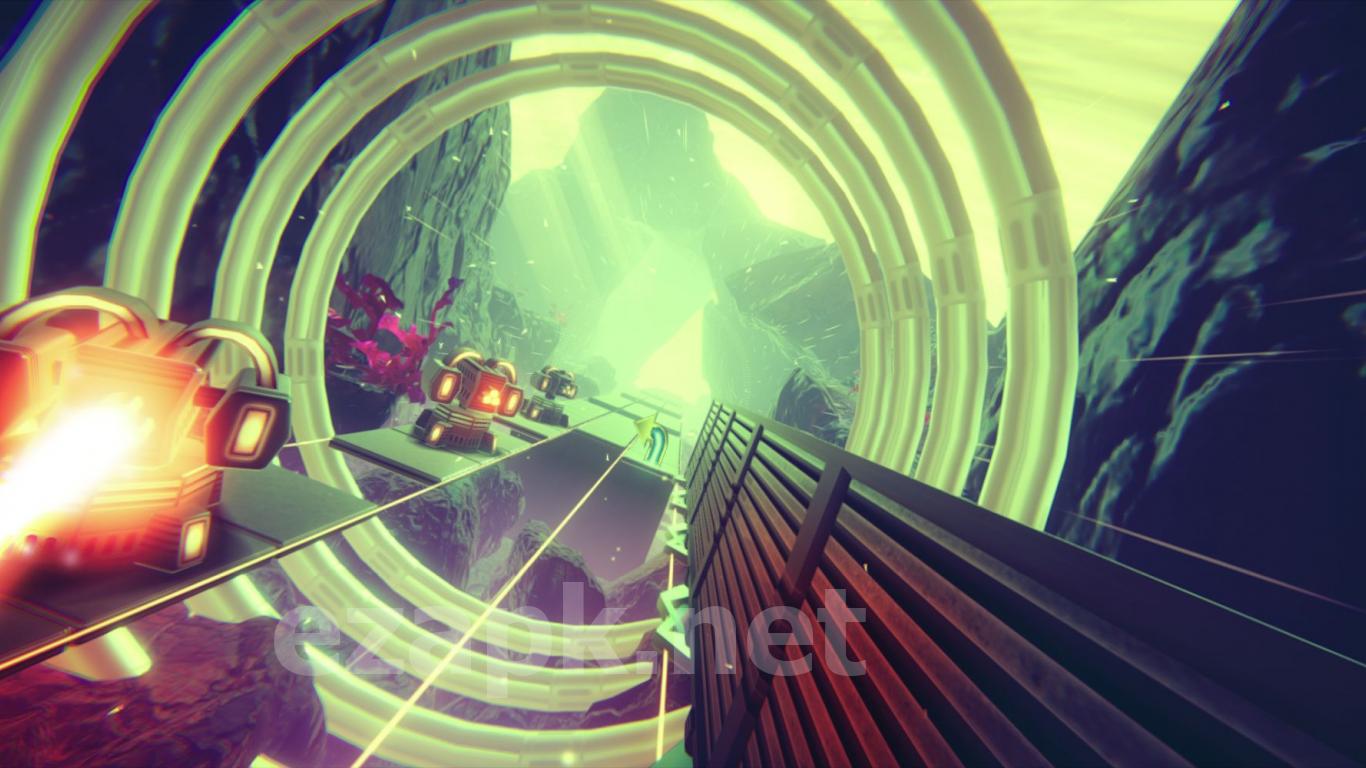 The player is running on a track. The arches that you will always meet on the way are what make the track resemble tunnels. The background is made of alien landscapes.