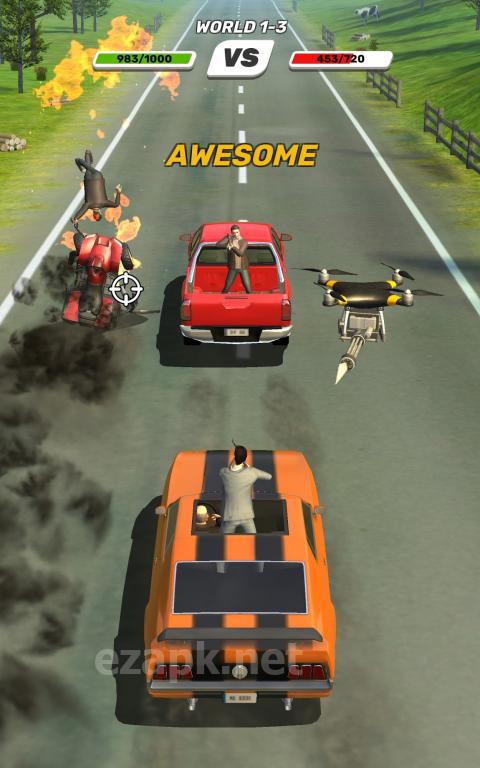 The player drives along the highway shooting enemies. They're capable of attacking in other cars and even destroying a helicopter. It finishes the arcade game off by finishing with a quality simulation of a real game environment.