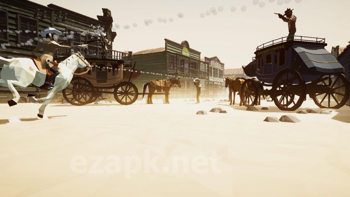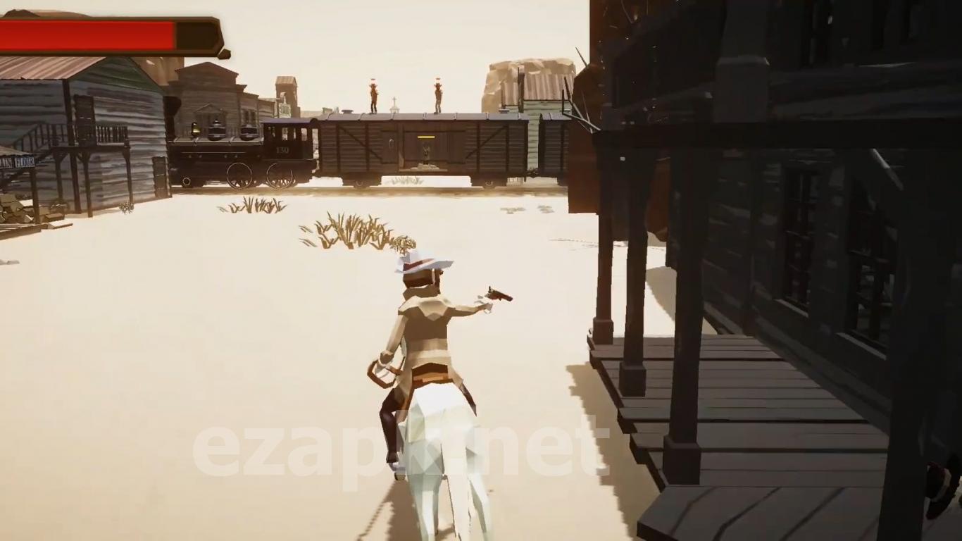 In this arcade shooter, the player rides a horse across the Wild West and shoots at cowboys as he goes. The latter will try to shoot him. The game will be over when the player runs out of lives.