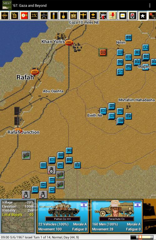 The player is invited to play for one of the sides in the conflict. The map of the region is divided into small hexagons. Units are represented by flags. The player can make orders from the map.