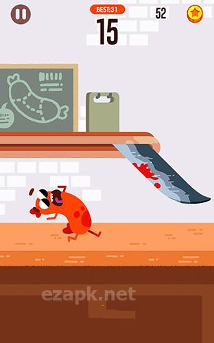 "Run, sausage, run!" The sausage is trying to save his life. Don't let the character get into a hot dog. The sausage is bending over. Get under the sharp knife or go into other traps if you want to prevent the sausage from burning on the fire.