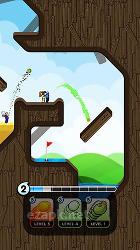 The golf is on unusual grounds. Control a golfer, calculate force of each ball hit, take the ball to holes and get prizes. Represent your country in golf competitons and defeat opponents in the game. There are many golf fields with obstacles and traps waiting for you. Touch the screen to make a decision about the hit. The ball will bounce. This feature can be used to get the ball to the hole. Buy suits and hats for the character.